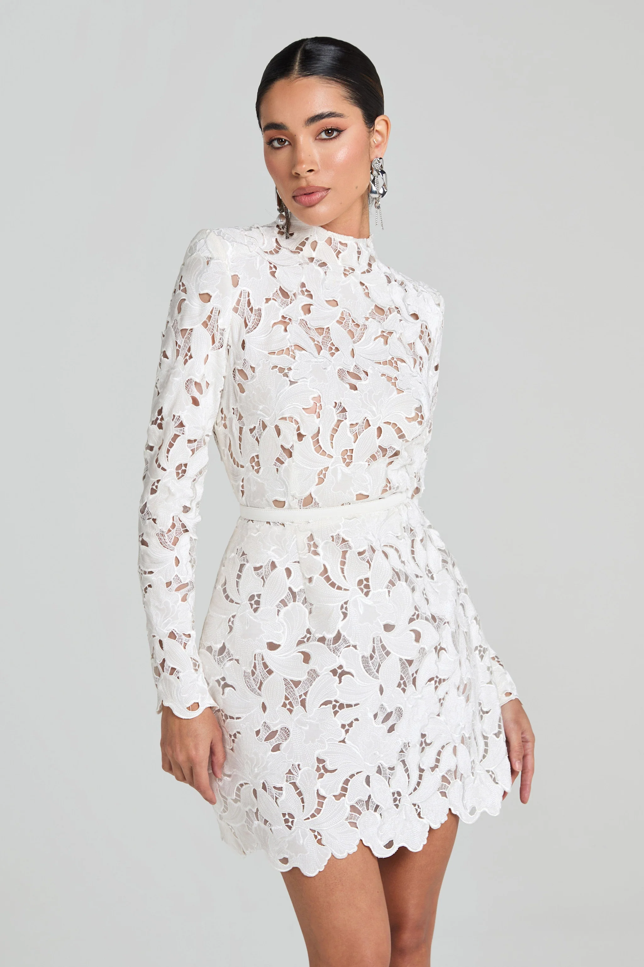 Long Sleeve Lace Knit Mini Dress