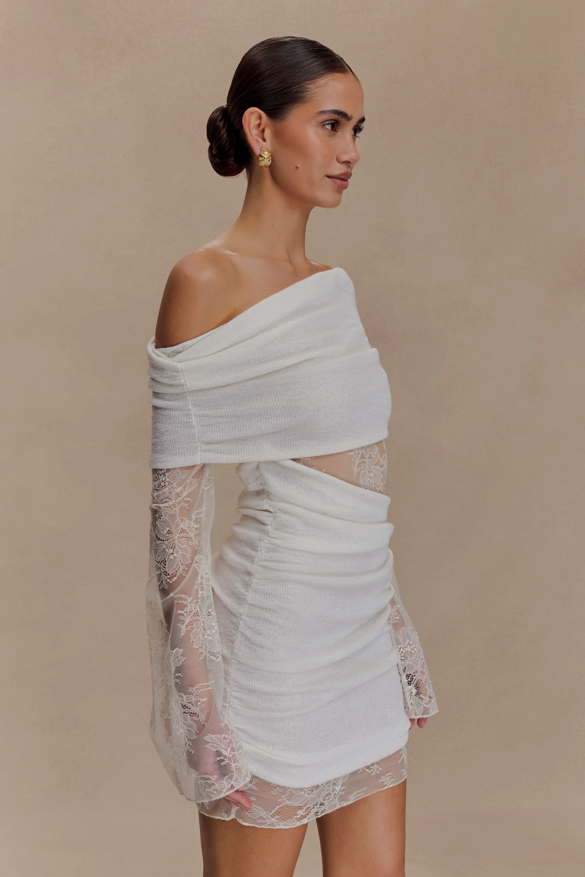 Long Sleeve Lace Knit Mini Dress